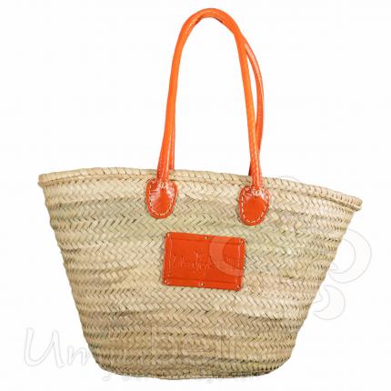 Startseite » Accessoires » Taschen » Design Korbtasche Elba orange von Umjubelt, Handarbeit aus Marokko, Bast + Leder, Top Fashion Style, Sommer, 60 x 35 cm