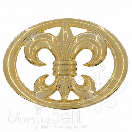 ➤ Lilie gold – eine ovale Design Schnalle mit einer heraldischen Lilie ✓