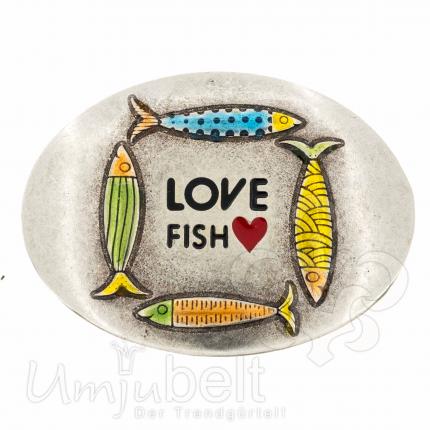 ➤ Love Fish – eine ovale Design Schnalle mit vier bunten Fischen ✓