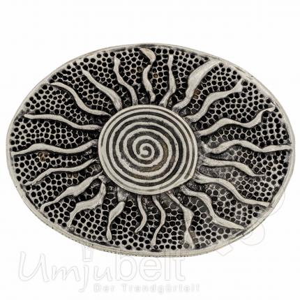 Startseite » Design Gürtelschnallen » Design by Umjubelt » Design Gürtelschnalle Sunshine von Umjubelt, nickelfrei, Fashion Style, oval, silber, unisex, für Gürtel bis 4 cm Breite