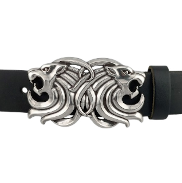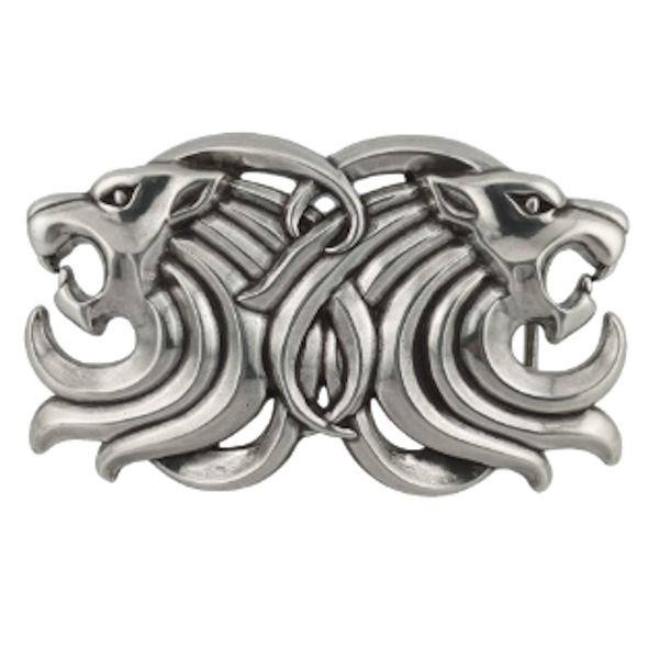 » » » Design Belt Buckle Lion Heads, silver-plated, polished, nickel-free, fashion style, unisex, for belts up to 4 cm wide