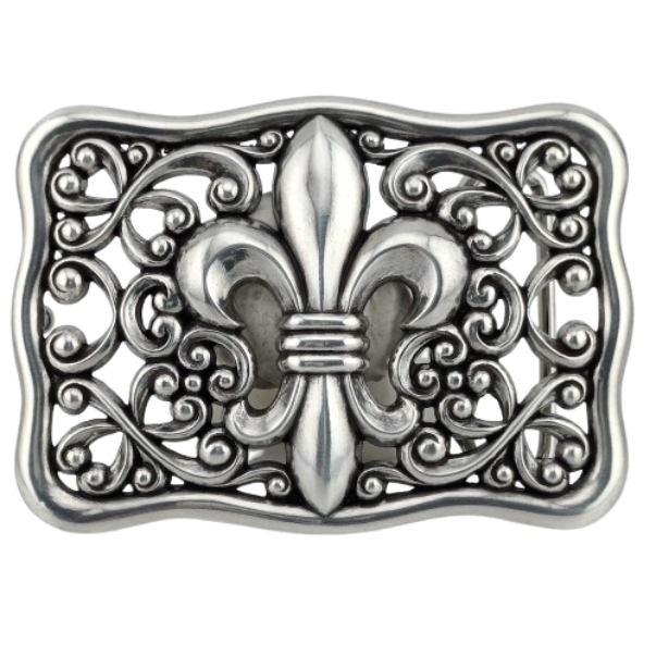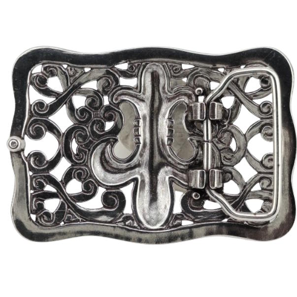 Belt buckle: Lily Cross Beautiful buckle consisting of: ➤ Lily Cross - with ornaments ✓ ✚ Size: 8,5 x 6,0 cm ✚ Colors: Silver ✚ Silver plated ✚ Fits belts up to 1 1/2"
