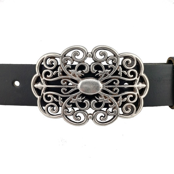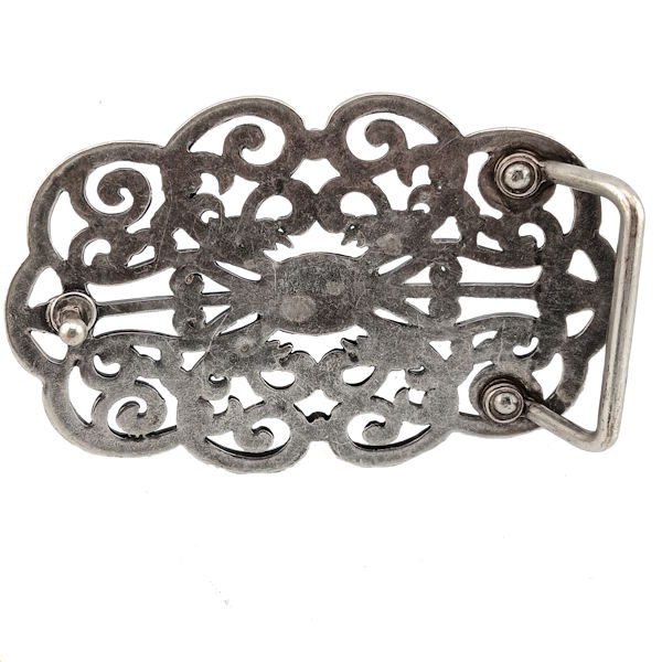➤ Sunny silver - fashionable oval buckle with floral tendrils ✓